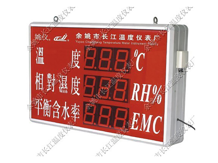 大屏溫濕度顯示儀,采用單(雙)面三排數碼管同時顯示溫度測量值、濕度測量值及平均含水率,溫濕度測量誤差可修正,適用于木材加工等場所的溫濕度和含平均水率測量。